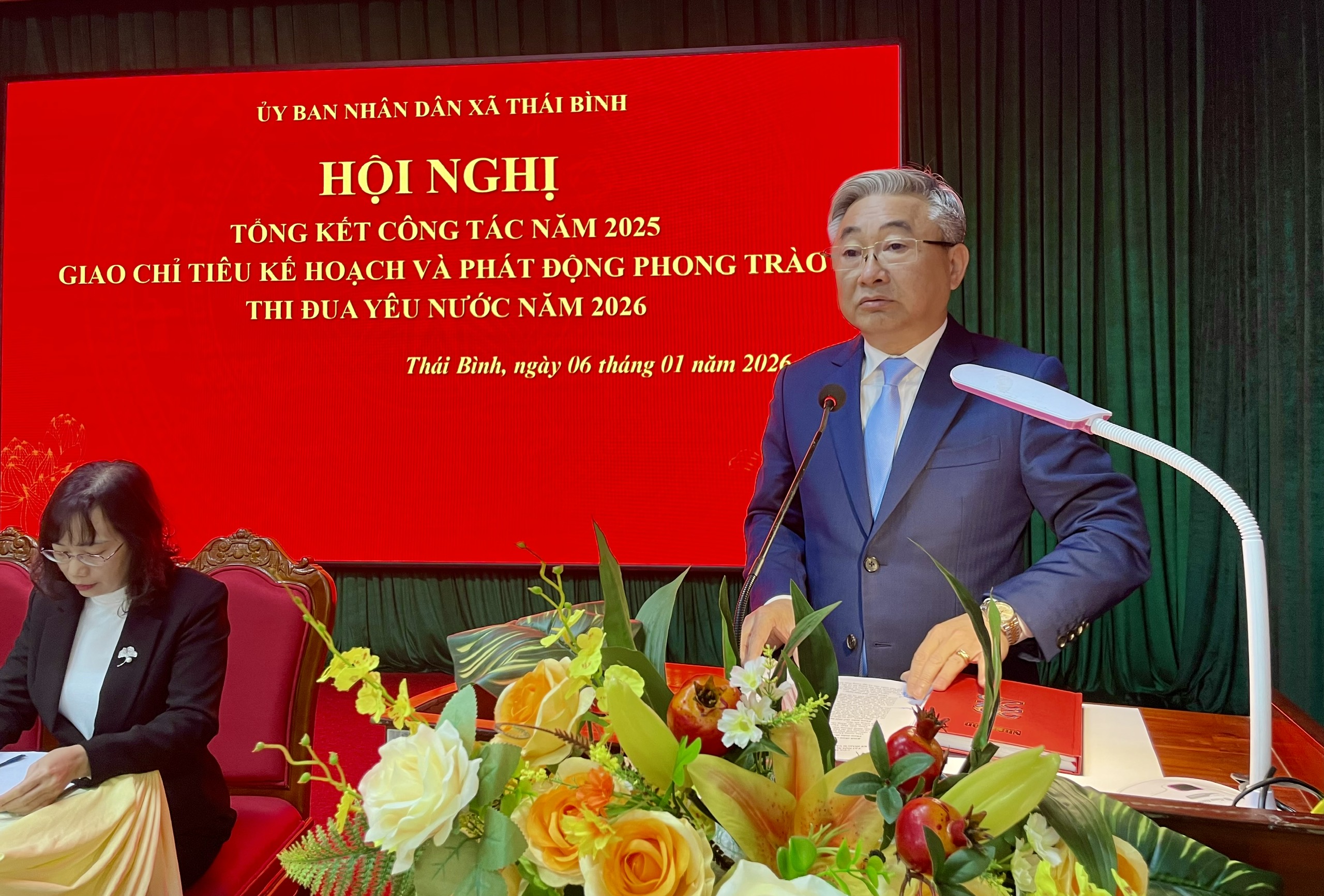 Sáng 6/1, UBND xã Thái Bình tổ chức Hội nghị tổng kết công tác năm 2025, giao chỉ tiêu kế hoạch và phát động phong trào thi đua yêu nước năm 2026.