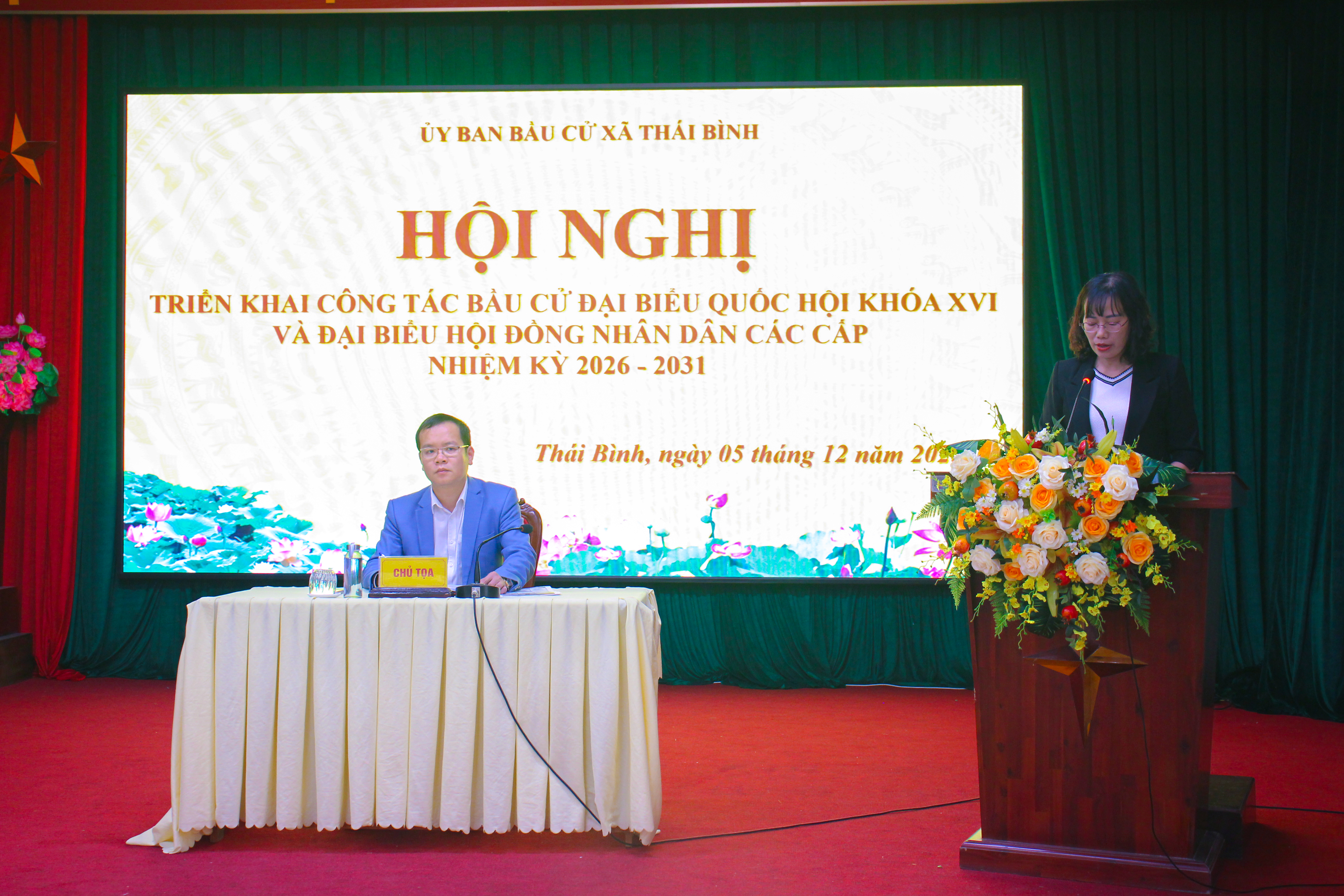 Chiều 05/12, Ủy ban bầu cử xã Thái Bình tổ chức Hội nghị triển khai công tác bầu cử đại biểu Quốc hội khóa XVI và đại biểu Hội đồng nhân dân các cấp nhiệm kỳ 2026-2031. Đồng chí Lê Anh Sơn, Phó Bí thư Đảng ủy, Chủ tịch UBND xã, Chủ tịch Ủy ban bầu cử xã dự và chỉ đạo hội nghị. Cùng dự có các đồng chí Phó Chủ tịch Ủy ban bầu cử xã và các thành viên Ủy ban bầu cử xã.