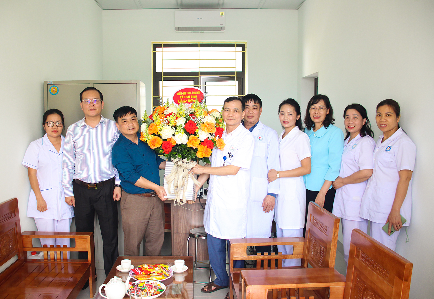 Lãnh đạo xã Thái Bình thăm và tặng quà trạm y tế xã nhân dịp kỷ niệm ngày Thầy thuốc Việt Nam
